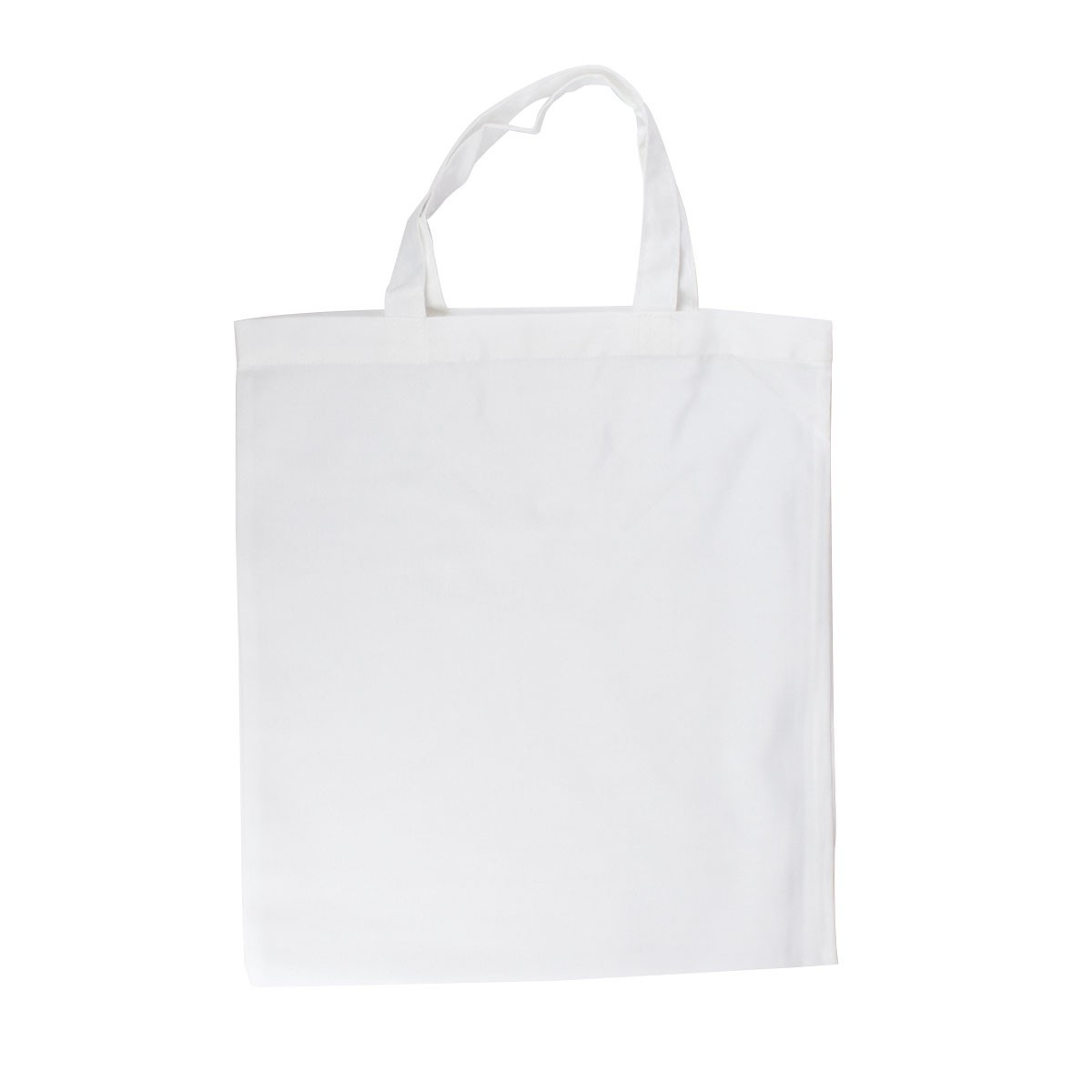 Diese weiße Baumwoll-Tragetasche mit zwei kurzen Henkeln lässt sich perfekt nach Ihren Wünschen anpassen. Ideal für personalisierte Geschenke oder als Werbeartikel mit Ihrem Firmenlogo.